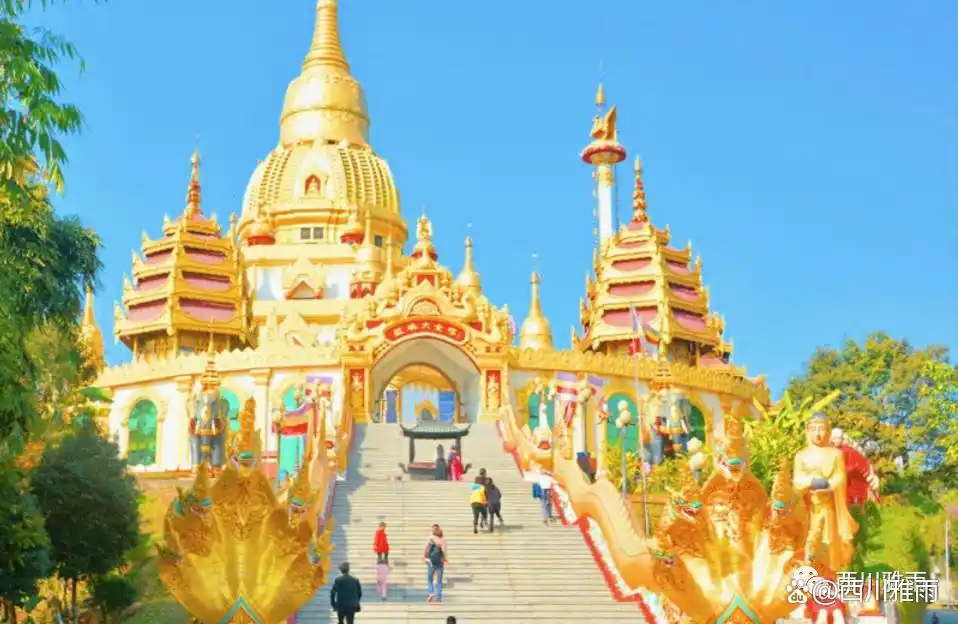 位于德宏州州府芒市东南部孔雀湖畔的雷牙让山顶,勐焕”意为黎明 之城。海拔1079.6m,传说释迦牟尼生前转世为 …