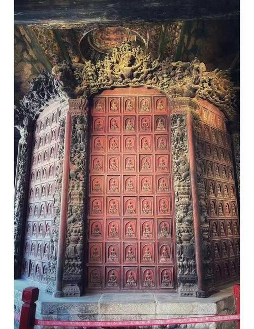 智化寺藏殿金丝楠木转轮藏。转轮藏分三层:汉白玉须弥座、金丝楠木经橱、最顶端毗卢遮那佛。而中层经橱上,最有价值、 …