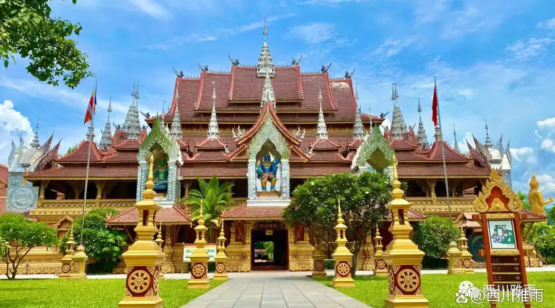 位于景洪市告庄,又称缅旬大金塔。于2009年11月开工建设,2013年11月封顶,景观区占地五亩,由佛塔,借佛祖犬次出巡版纳的典故打造的佛足石、许愿台等构成。大金塔是景洪市的总佛寺,主管了景洪市内二百零五座寺院。景洪大金塔高66.6m ,寓意一江(澜沧江)连六国。此塔是告庄西双景(意为“九塔十二城”)九塔之一。大塔一层是佛堂、禅堂、教室、阅览室、斋堂、寺院办公室等功能性区域,大塔二层为大殿供信众朝圣,大塔顶层修建佛舍利塔,供奉佛陀舍利。建筑风格是经典的东南亚风格,采用的是四边形结构,每个面不同的朝向,代表的是四个国家:中国、泰国、老挝、缅甸。