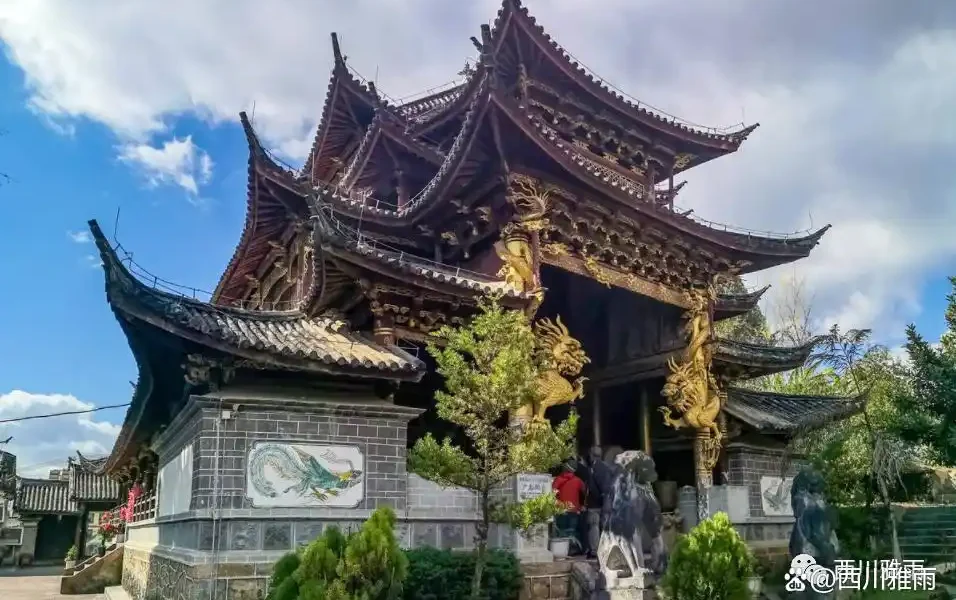 位于德宏州州府芒市东南部孔雀湖畔的雷牙让山顶,勐焕”意为黎明 之城。海拔1079.6m,传说释迦牟尼生前转世为金鸡阿峦时曾在此生活。抗日战争被毁,2004年重建,2007年5月竣工,建筑面积3757m²,塔设计为7级,整座塔高76m,塔底基座直径50m,造型为八角四门空心佛塔,下三层为空心大厅。第一层大殿面积2000m²,中心方柱东西南北塑有4座佛像。第二第三层外平台建有16座造型别致的群塔,塔亭内有16尊汉白玉佛像。塔身主体为钟型大塔,第二、三层各建有小塔8座,第四层外平台建有8个精美的花瓶塔。基座之上的主心柱以大钟和13个钵上垒砌而成,最高点戴有重达2.3吨的大金顶。勐焕大金塔属于南亚傣王宫的建筑风格,中国第一金佛塔,亚洲第一空心佛塔。
